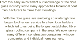 The company has its roots firmly in the very early days of Glass Fibre Manufacture.